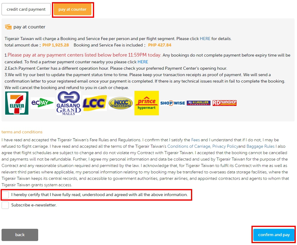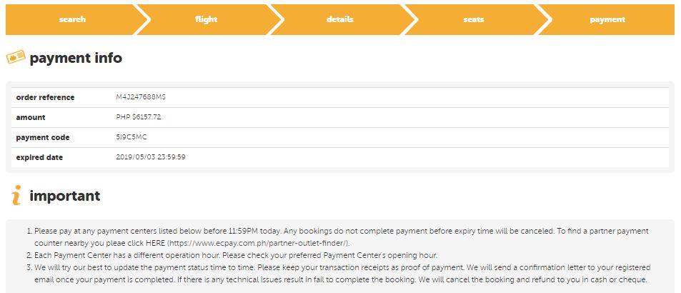 We are happy to announce now passengers are able to choose to pay cash at a convenient store and bank nearby in the Philippines. This is an alternative way to purchase the flight tickets on Tigerair Taiwan website. More details as below: